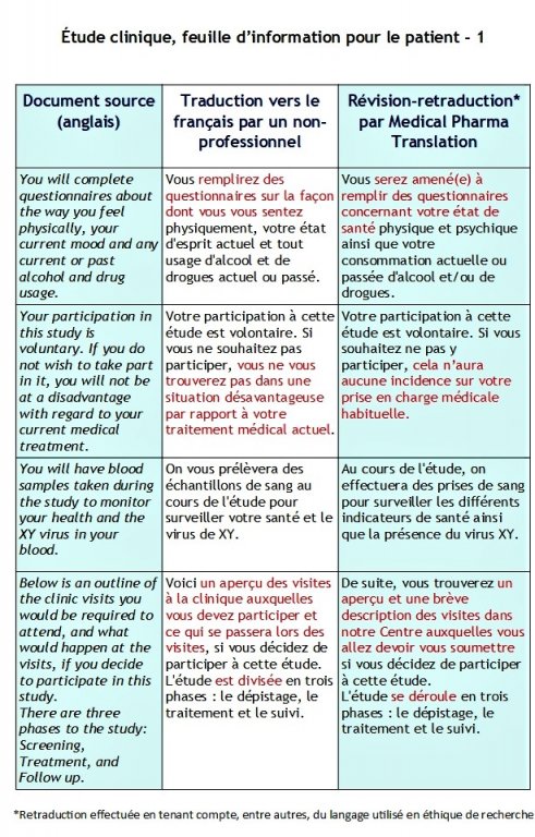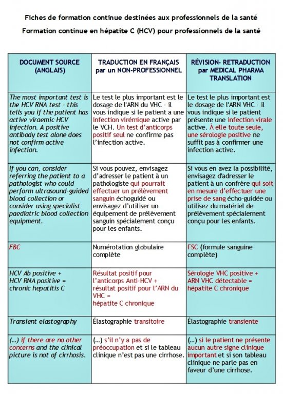 The pictures below outline two examples of work we could perform together (extract of two English-French medical translations I revised, right column). Further examples are available on the corresponding French and Italian page or on my Portfolio.